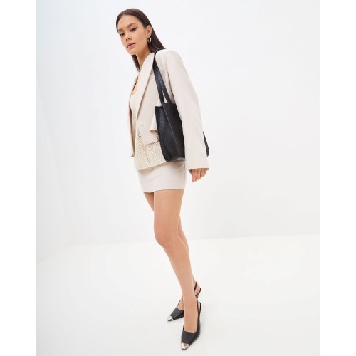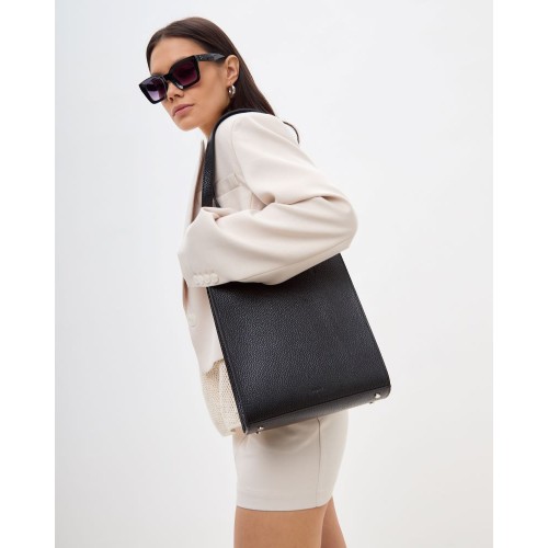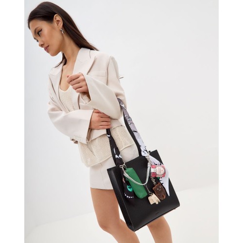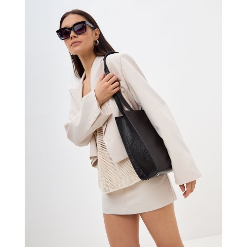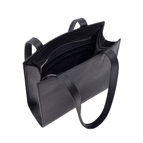 Сумка женская с удлиненными ручками на плечо. Сумка застегивается на молнию и имеет одно отделение. На задней стенке расположен карман на молнии для быстрого доступа. Сумка на подкладке. Внутри сумка имеет карман на молнии и карман накладной карман на молнии из плотного материала. Cумка имеет большой объем. При этом она легкая , удобная в носке, полужесткий каркас.