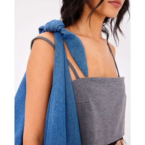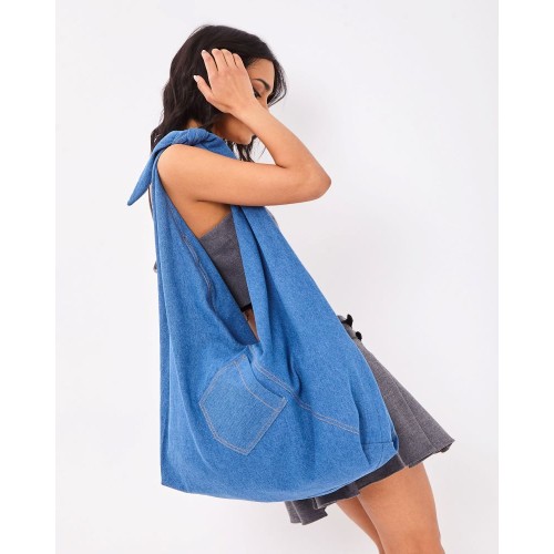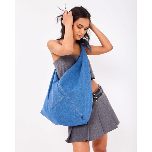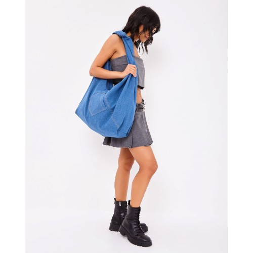 Самая трендовая модель сезона – максимально вместительная сумка ХОБО из ДЕНИМА. Одна регулируемая ручка бант, подходит для ношения на плече или через плечо.