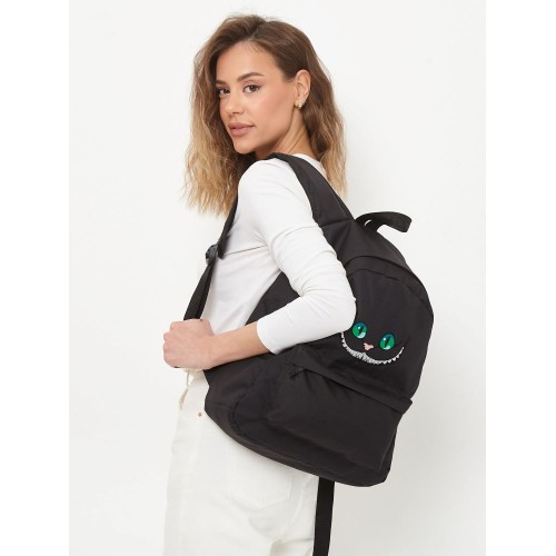Легкий текстильный рюкзак со сказочной вышивкой ЧЕШИРСКИЙ КОТ и ироничным настроением.