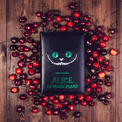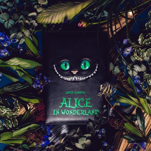 Совершенно уникальная сумка книга из натуральной кожи, украшена роскошной вышивкой, по мотивам иллюстраций Джона Тэнниела к Алисе в стране чудес