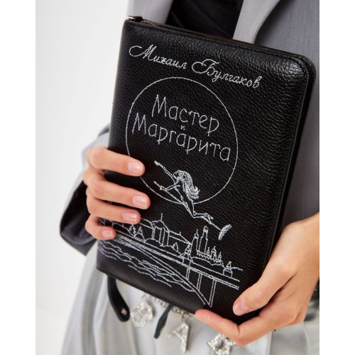Совершенно уникальная сумка книга из натуральной кожи, украшенная роскошной вышивкой, по произведениям М. Булгакова Мастер и Маргарита в сотрудничестве с известной художницей Марьям Садердиновой.