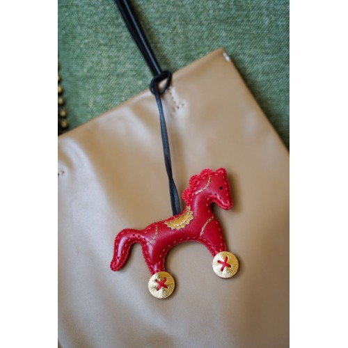 Брелок- обвес ЛОШАДКА из натуральной кожи (красный в сочетании с золотым) - это интересный способ персонализировать Вашу сумку.
