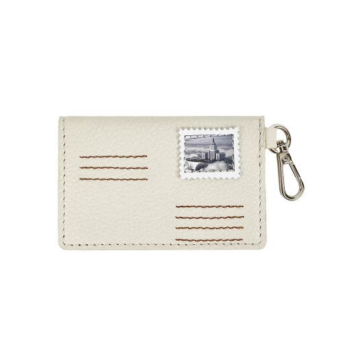 Оснащена металлическим карабином, с помощью которого карточницу можно закрепить в сумке, на ключах или за шлёвку джинс.