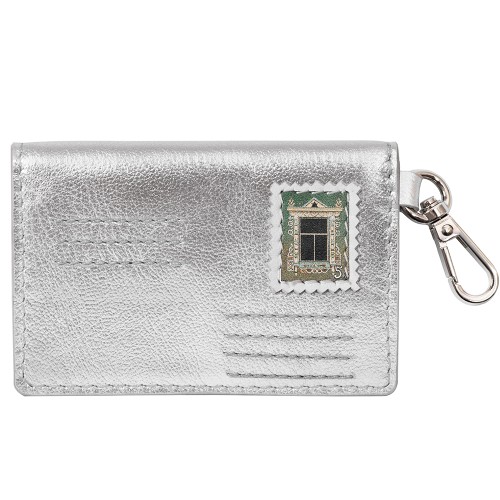 карточница, кожаная карточница, аксессуар для карт, металлизированная кожа, катя белявская, коллекция космос, pepfer, ручная работа, авторская аппликация, оригинальный аксессуар, карточница с кнопкой