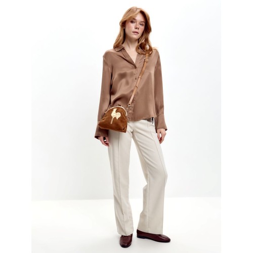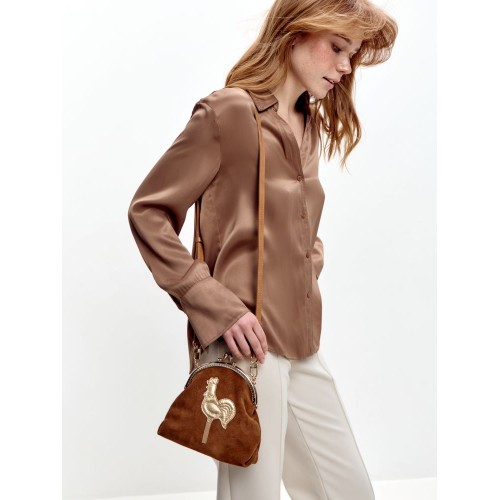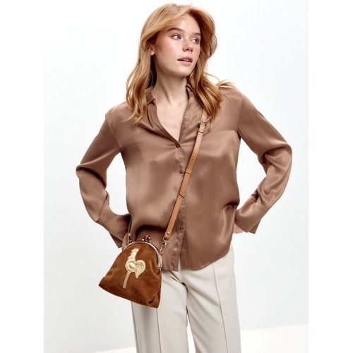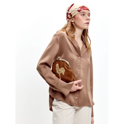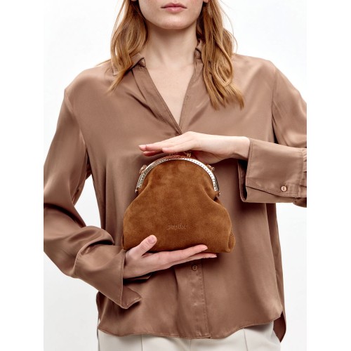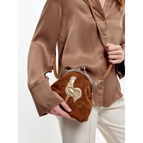 Сумка-клатч фермуар выполнена из натуральной замши и украшена аппликацией из натуральной кожи «Леденец петушок на палочке».