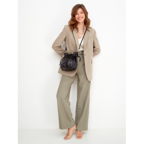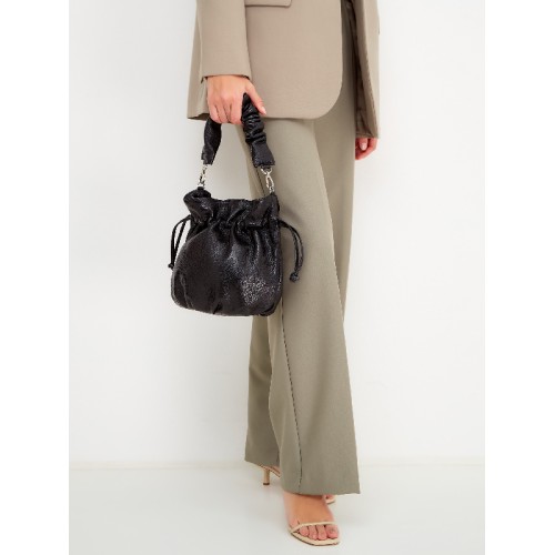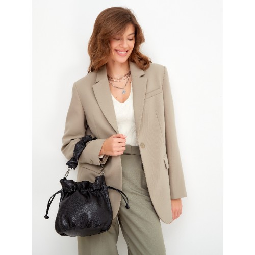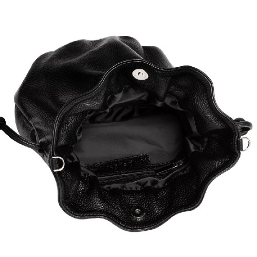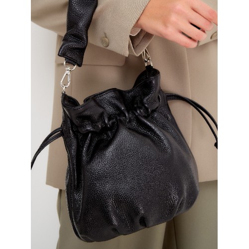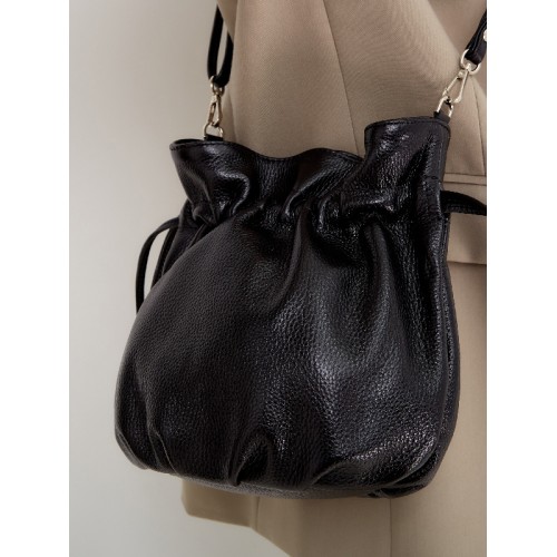 Сумка мешок от PEPFER выполнена из натуральной кожи с контрастной отделкой из лицевой кожи. Особенности: застежка на кулиску и магнитную кнопку. Внутри 1 карман на молнии, открытый для телефона. Съемный регулируемый ремень из натуральной кожи, декоративная ручка из натуральной кожи для ношения на плече или как украшение модели.
