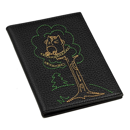 Стильный аксессуар из коллекции бренда PEPFER выполнен из натуральной кожи и украшен вышитым изображением, вдохновленным русскими народными сказками. По иллюстрации Анны Жандерович.
