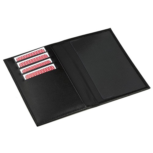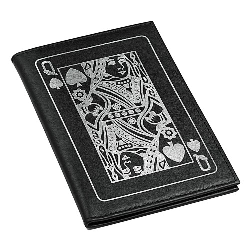 Стильный аксессуар из премиальной кожи выполнен в черном цвете и украшен изображением, вдохновленным "Пиковой дамой".