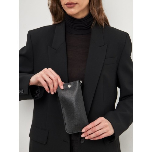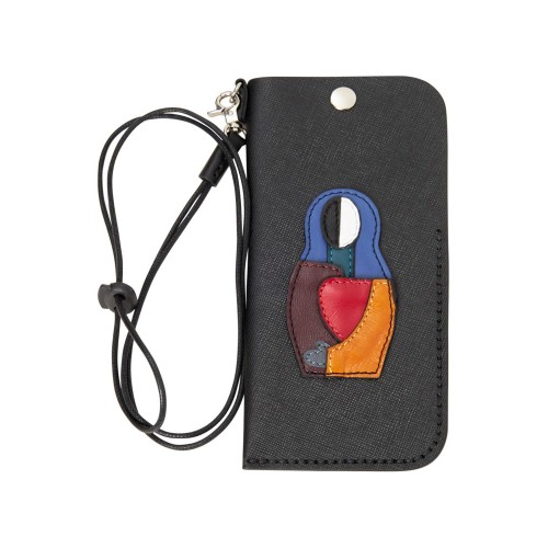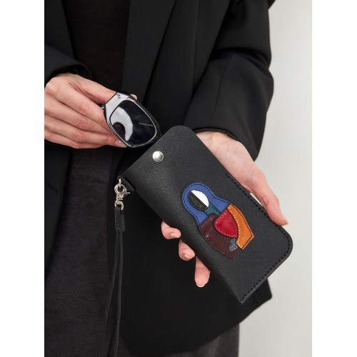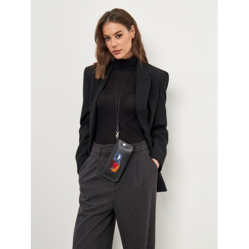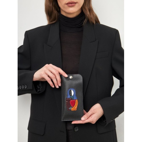 Очечник из премиальной кожи сафьяно с аппликацией из натуральной кожи, выполнена ручным швом и застегивается на кнопку.