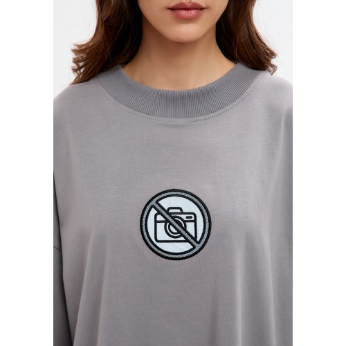 Свитшот унисекс с коротким рукавом (oversize) из 100% хлопка — стильный акцент для города, музеев и выставок. На груди — вышивка «перечёркнутый фотоаппарат» из коллекции Pepfer, выполненная методом аппликации из светоотражающей ткани. Свободный крой и универсальный размер обеспечивают комфорт и актуальный силуэт.