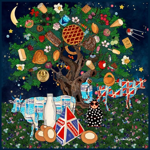 Корова и упаковки молока – отсылка к привычным предметам повседневности, объединяющим поколения.
