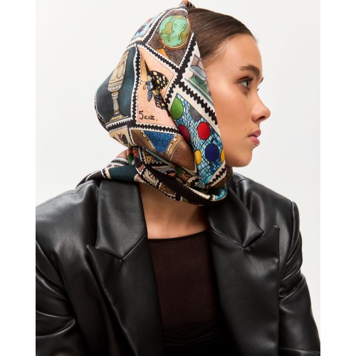 Платок объединяет значимые символы и культурные коды прошлого, создавая уникальный аксессуар, наполненный историей и художественной ценностью.