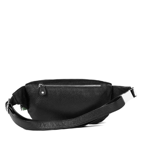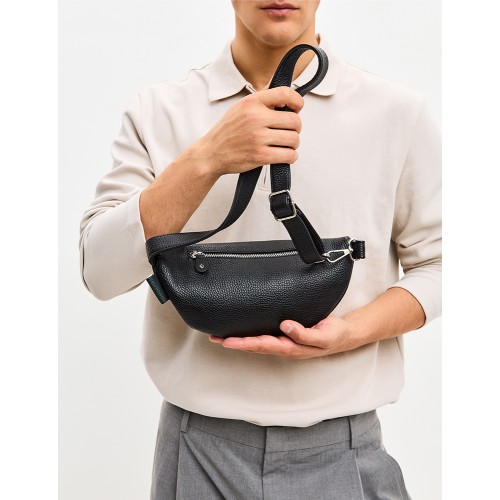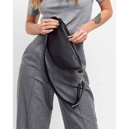 Удобная и практичная поясная сумка черного цвета из натуральной кожи, закрывается на молнию. Имеет 2 отделения.