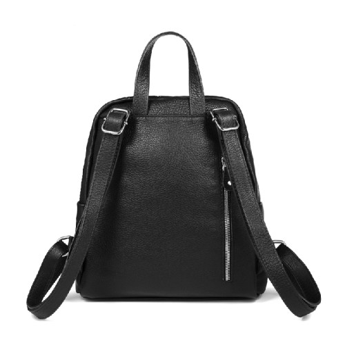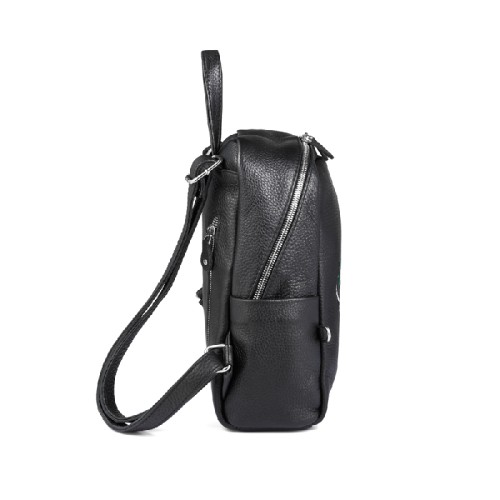 Удобный и практичный рюкзак черного цвета из натуральной кожи, закрывается на молнию. Внутри большое отделение, карман на молнии, карабин для ключей. Внешний карман на молнии для быстрого доступа.
