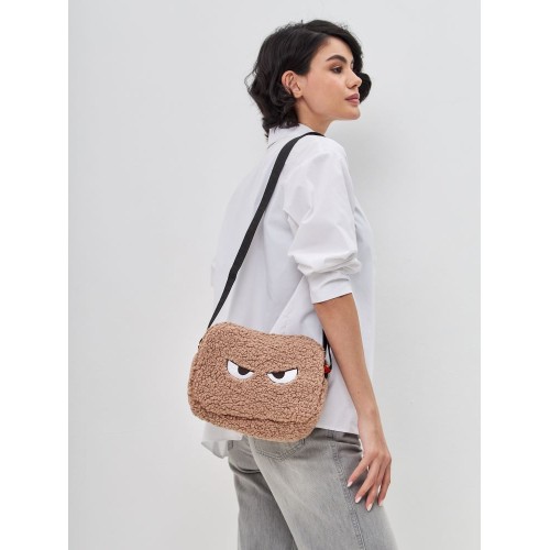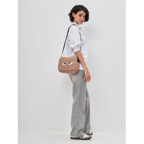 Сумка с вышивкой от бренда PEPFER выполнена из искусственного меха.