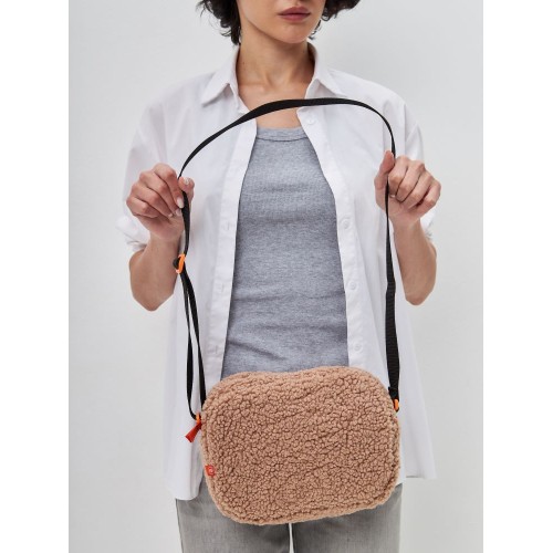 Модель дополнена не съемным регулируемым плечевым ремнём и яркой оранжевой фурнитурой.