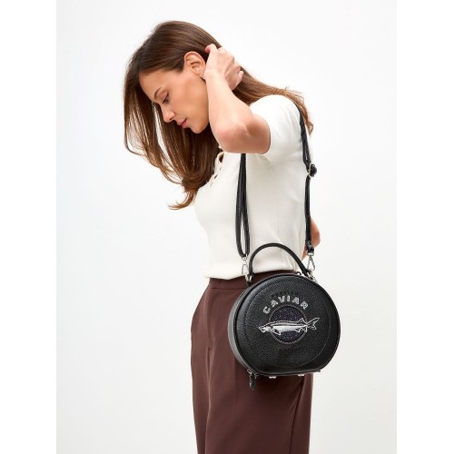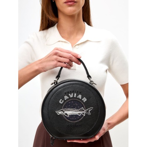 Стильная сумка из натуральной кожи с объемной вышивкой ЧЕРНАЯ ИКРА, вдохновлена промышленным дизайном.
