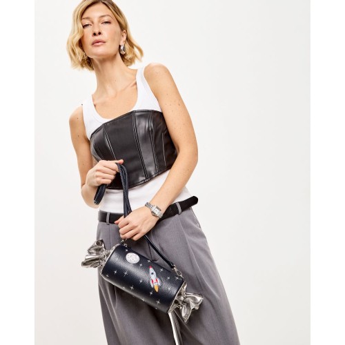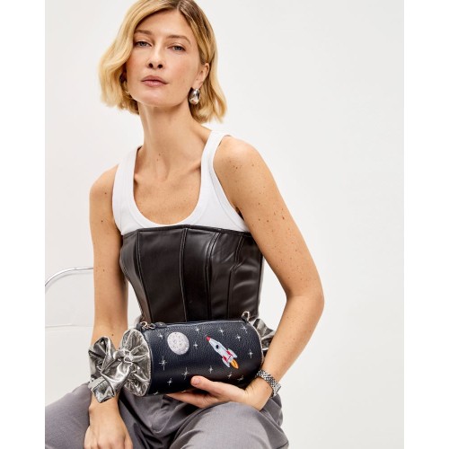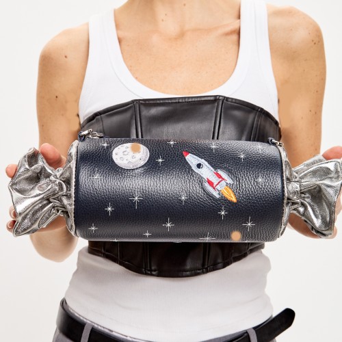 Сумка понравится всем, кто обладает чувством юмора и любит стилистику промышленного дизайна и космос.