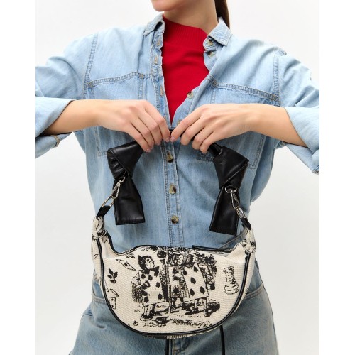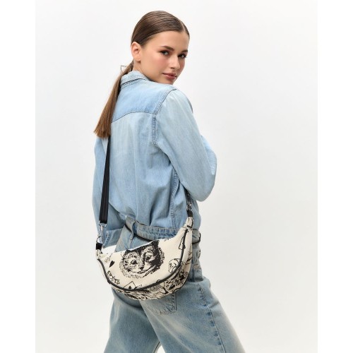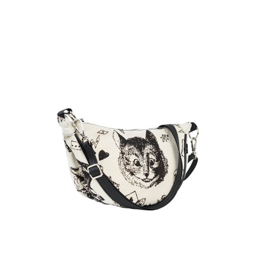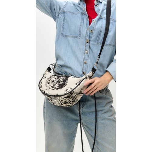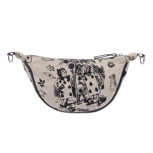Сумка кроссбоди выполнена из прочного износостойкого гобелена по мотивам иллюстраций Джона Тэнниела к Алисе в стране чудес Льюиса Кэрролла.