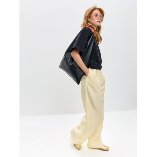 Сумка-шоппер хобо выполнена из высококачественной натуральной кожи. Модель отличается минималистичным дизайном и увеличенным размером, что делает её удобной для повседневного использования, офиса или поездок.