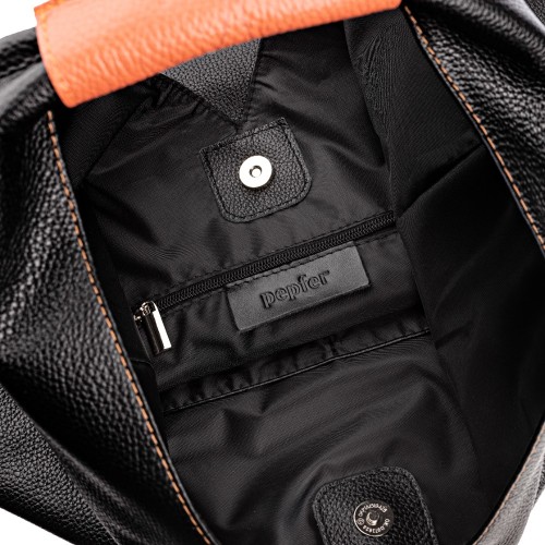 Снаружи расположен большой карман на молнии для быстрого доступа. Внутри — одно основное отделение, карман на молнии для документов, а также двойной открытый карман для мобильного телефона и мелких предметов.