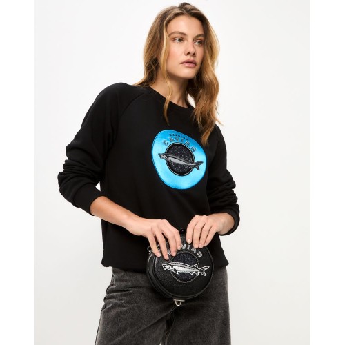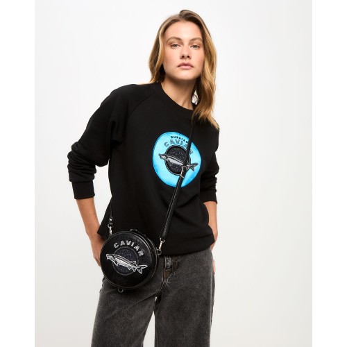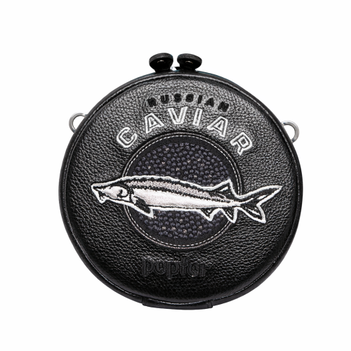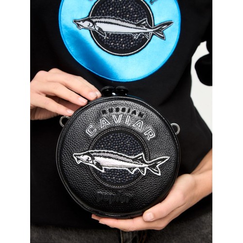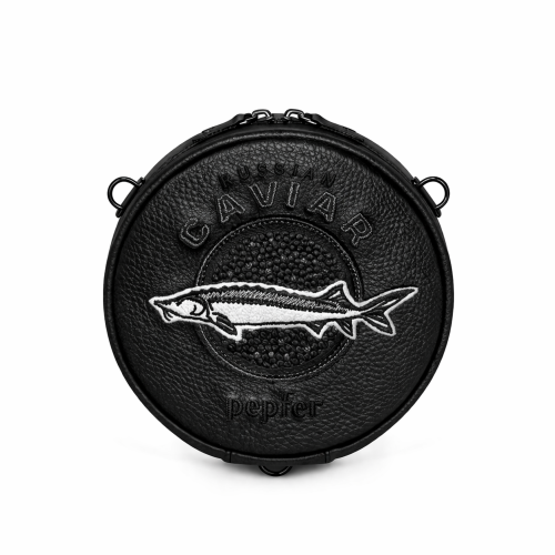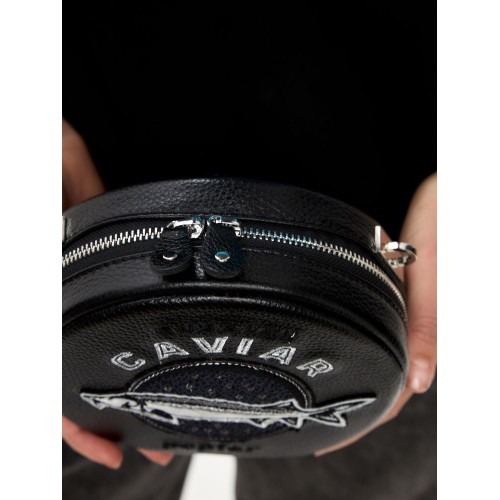 Оригинальная сумка PEPFER из натуральной кожи в черном цвете — это не просто аксессуар, а акцентный элемент образа с характером. Дизайн вдохновлен эстетикой банки черной икры — узнаваемый силуэт, ирония и культурный код, превращенные в носимое искусство.