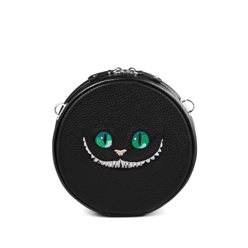 Сумка из натуральной кожи с вышивкой Чеширского Кота из "Алисы в стране чудес" — для тех, кто не боится играть с реальностью.