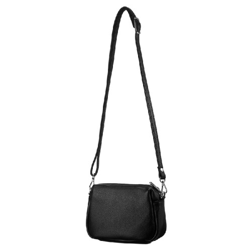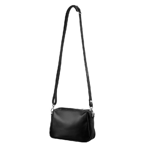 Удобная и практичная сумочка черного цвета из натуральной кожи, закрывается на молнию. Внутри небольшое отделение.