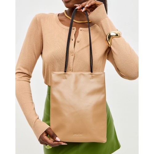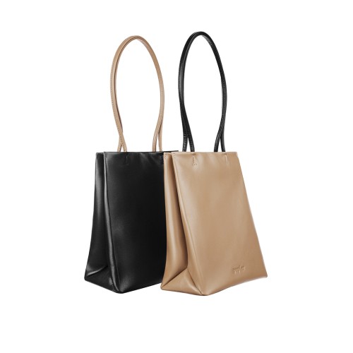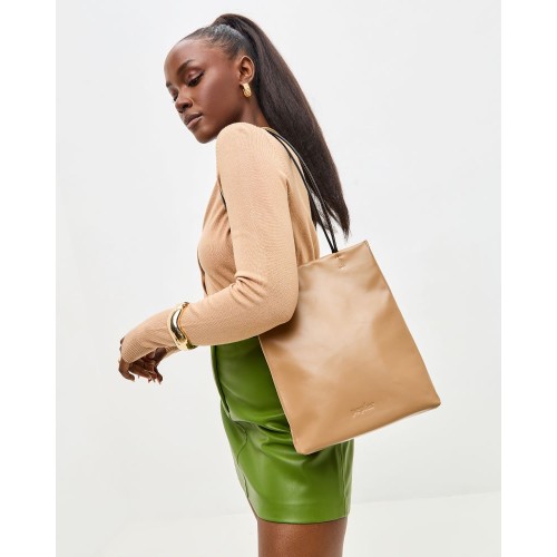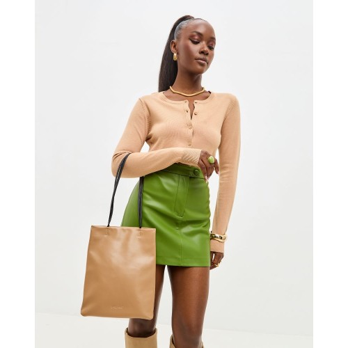 Сумка пакет в размере M от PEPFER выполнена из натуральной гладкой кожи c контрастными ручками.