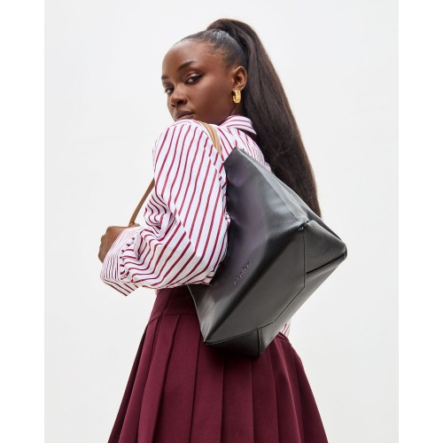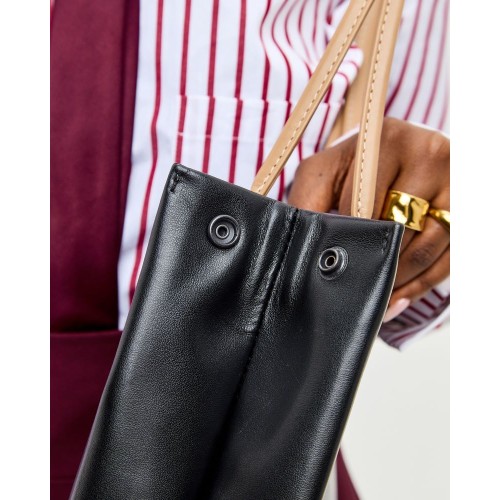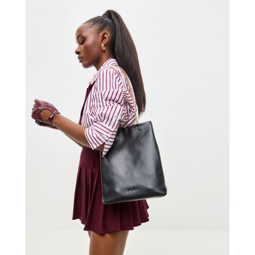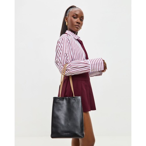 Сумка пакет в размере M от PEPFER выполнена из натуральной гладкой кожи c контрастными ручками.