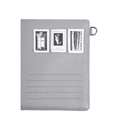 Внутри — принтованный подклад с произведением «Письмо женщине». Дизайн вдохновлён почтовым конвертом.