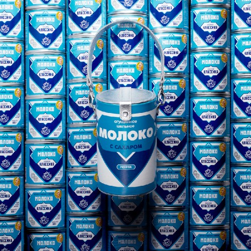Узнаваемый дизайн банки сгущенного молока, любимого многими с детства, послужил источником вдохновения для создания этой сумки.