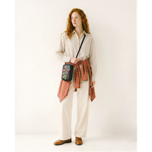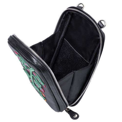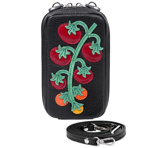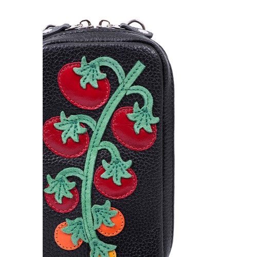 Сумка Pepfer Томаты выполнена из натуральной кожи с аппликацией в виде помидоров. Компактная и вместительная, она легко размещает два телефона и карточки.