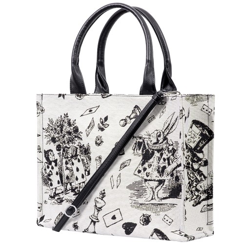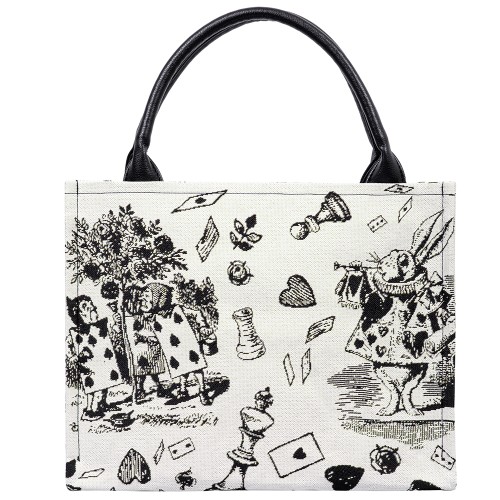 Сумка выполнена из прочного износостойкого гобелена по мотивам иллюстраций Джона Тэнниела к Алисе в стране чудес Льюиса Кэрролла.
