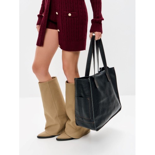 Сумка-шоппер формата тоут выполнена из высококачественной мягкой натуральной кожи. Модель отличается вместительностью и минималистичным дизайном.