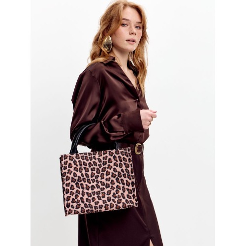 Сумка выполнена из прочного и износостойкого жаккардового материала с леопардовым принтом. Жаккард сохраняет форму и устойчив к повреждениям при повседневной эксплуатации.