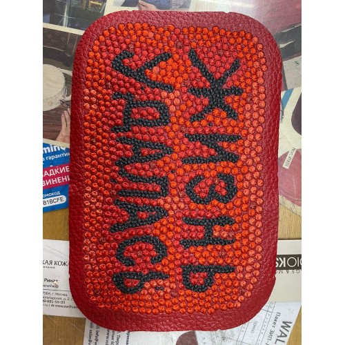 Карточница из натуральной кожи с аппликацией в виде игральных карт. Вмещает до 4 карт, предусмотрено..