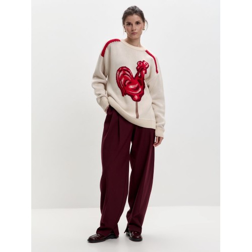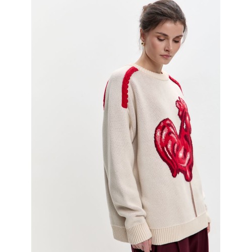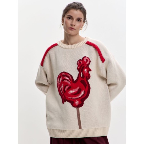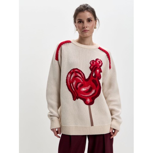 Свитер с леденцом Петушок на палочке родился из детской памяти и превратился во взрослую, уверенную и немного ироничную вещь. Это тот самый образ из прошлого, который неожиданно идеально чувствует себя в настоящем.