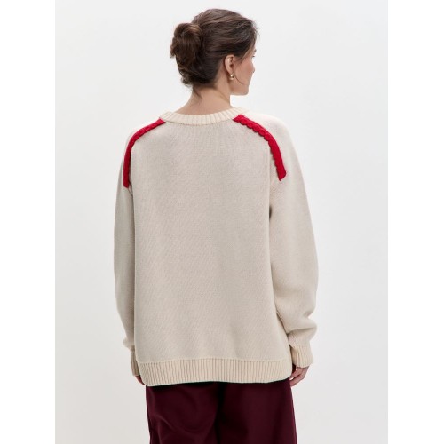 У свитера есть характер и свобода. Его можно носить с двух сторон. Лицевая сторона более спокойная и универсальная. Оборотная создана для смелых и креативных образов, для тех, кто любит играть с модой и неожиданными акцентами.