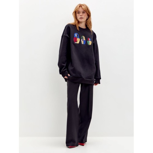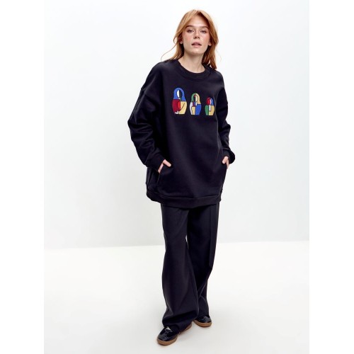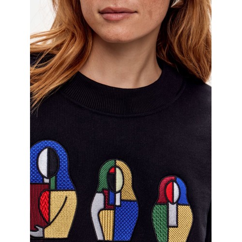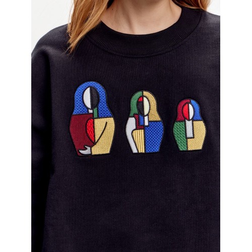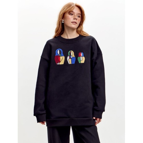Свитшот СУПРЕМАТИЗМ, выполненный из плотного хлопка, сочетает комфорт, практичность и художественный акцент. Модель разработана в Pepfer и украшена вышивкой «Супрематизм» в виде трёх матрёшек разного размера.